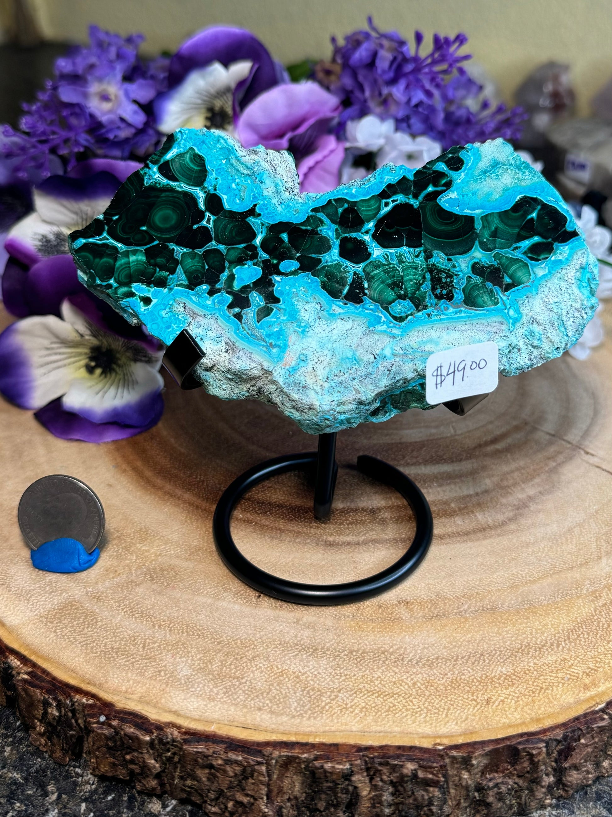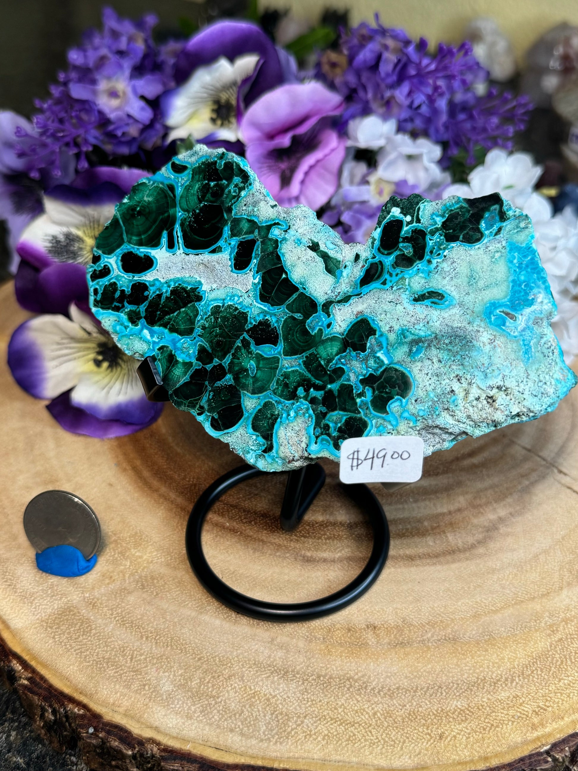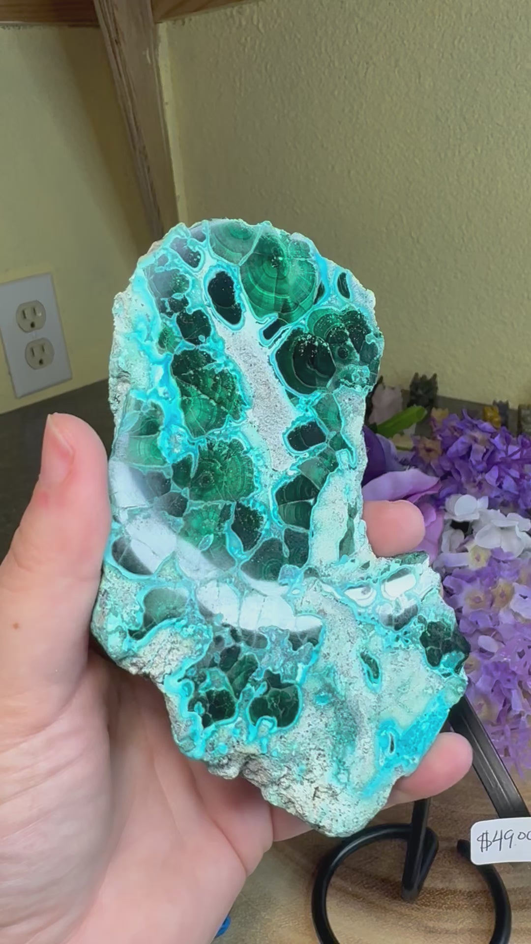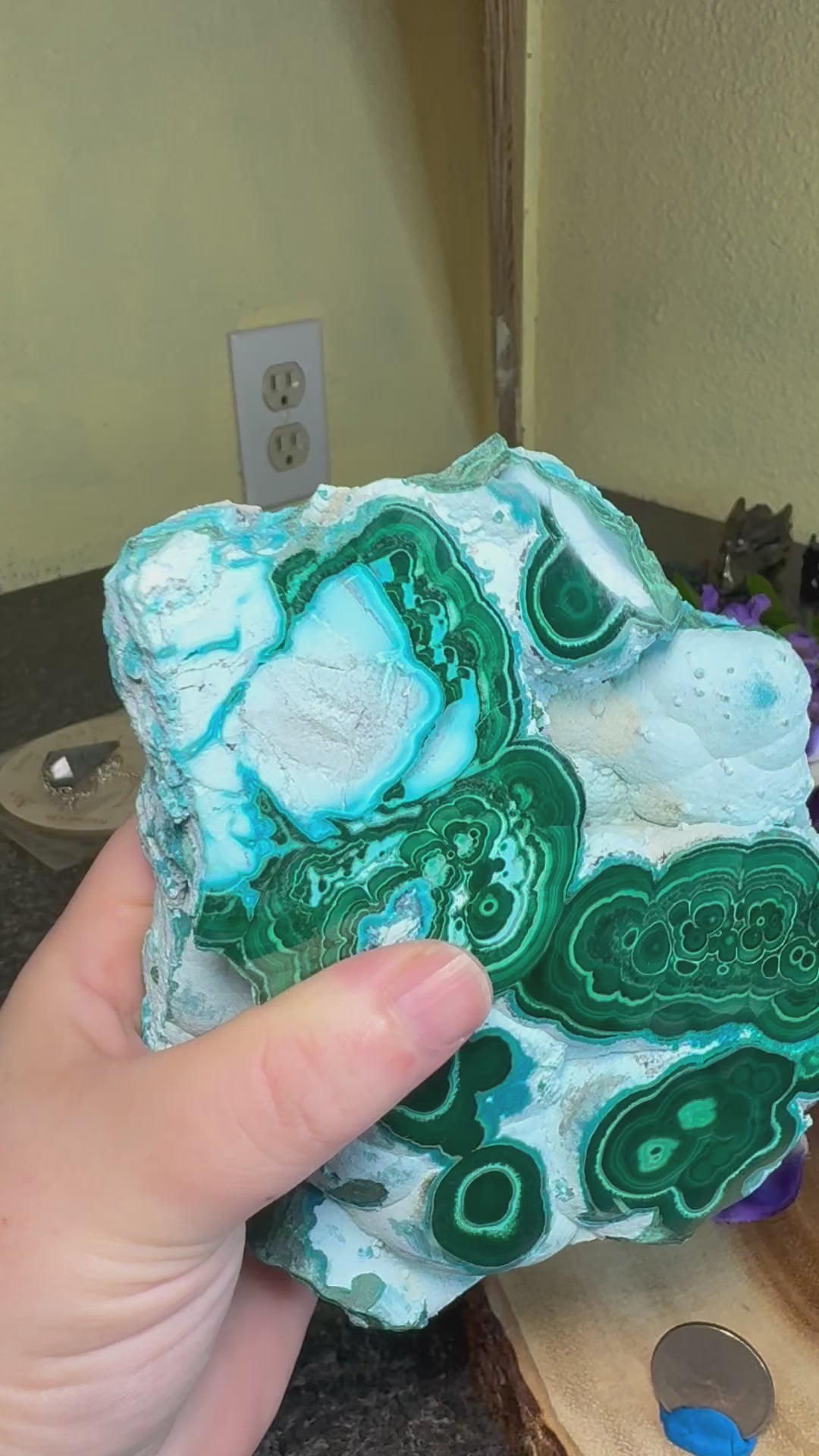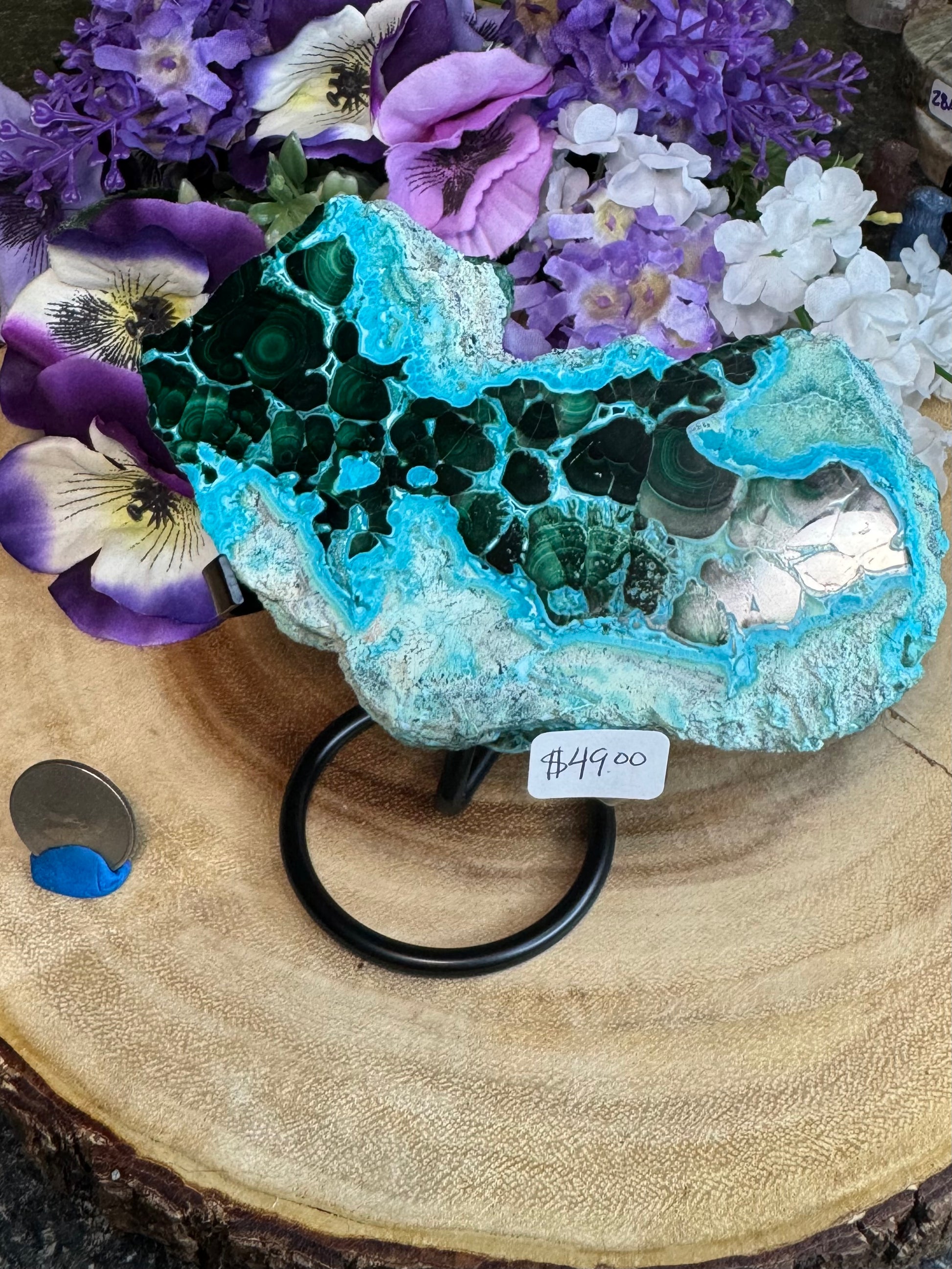 Malacholla is a combination of Malachite and Chrysocolla. It carries both the rich green of malachite and the bold turquoise hues of chrysocolla.
