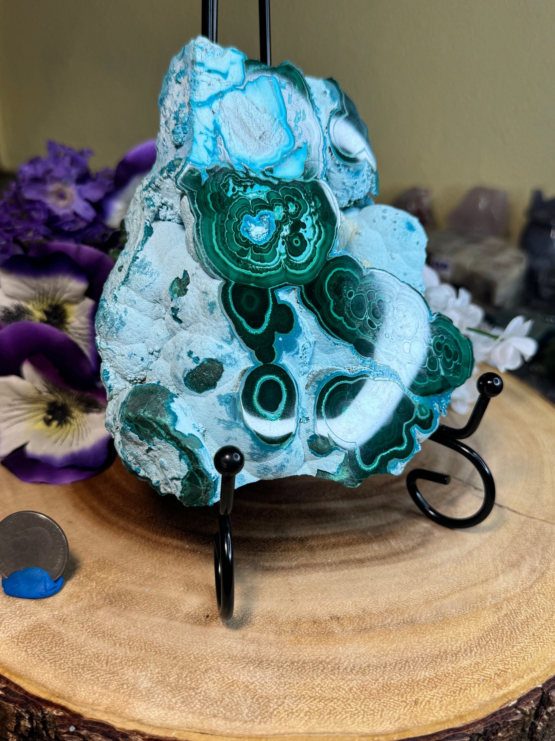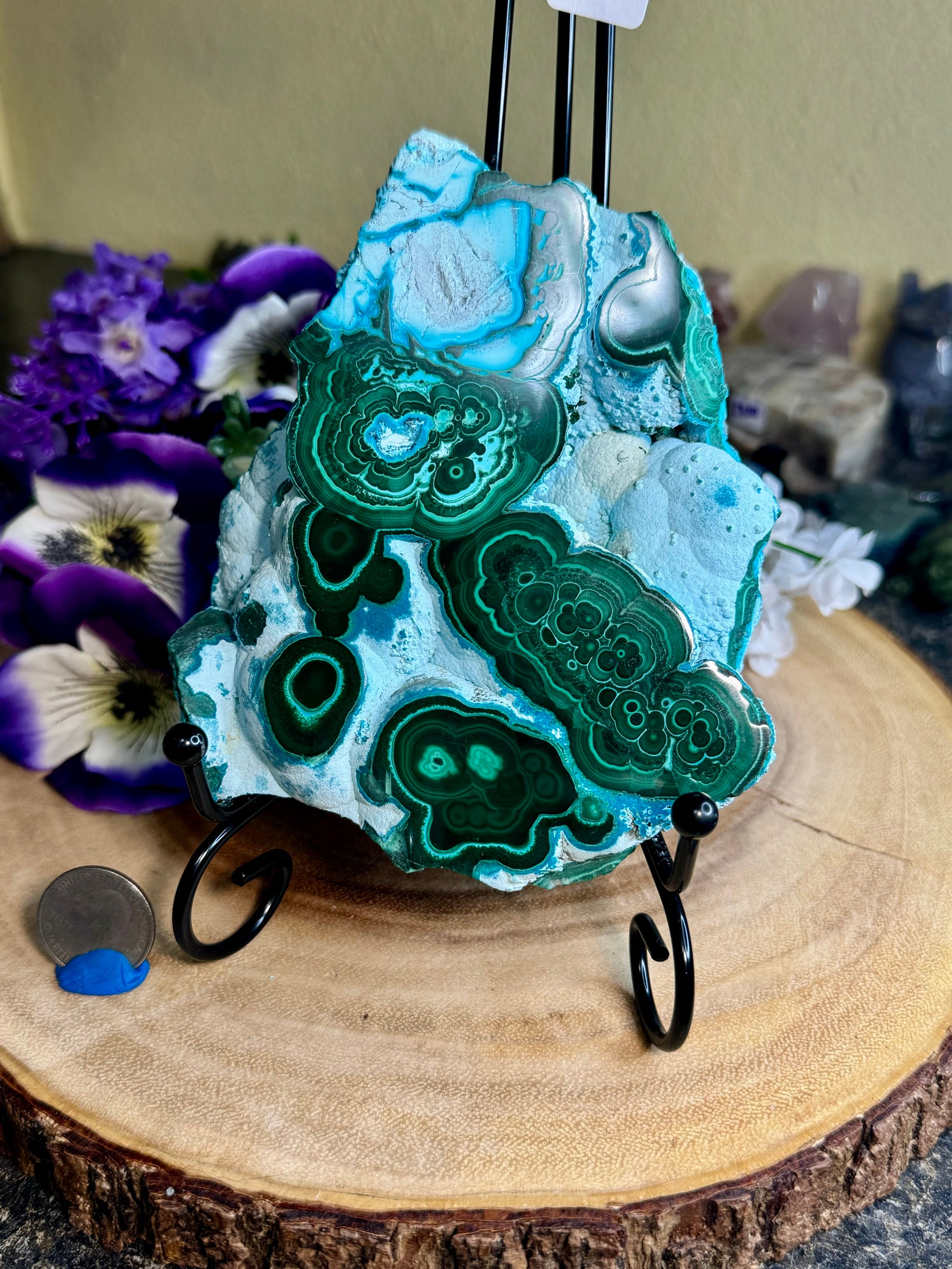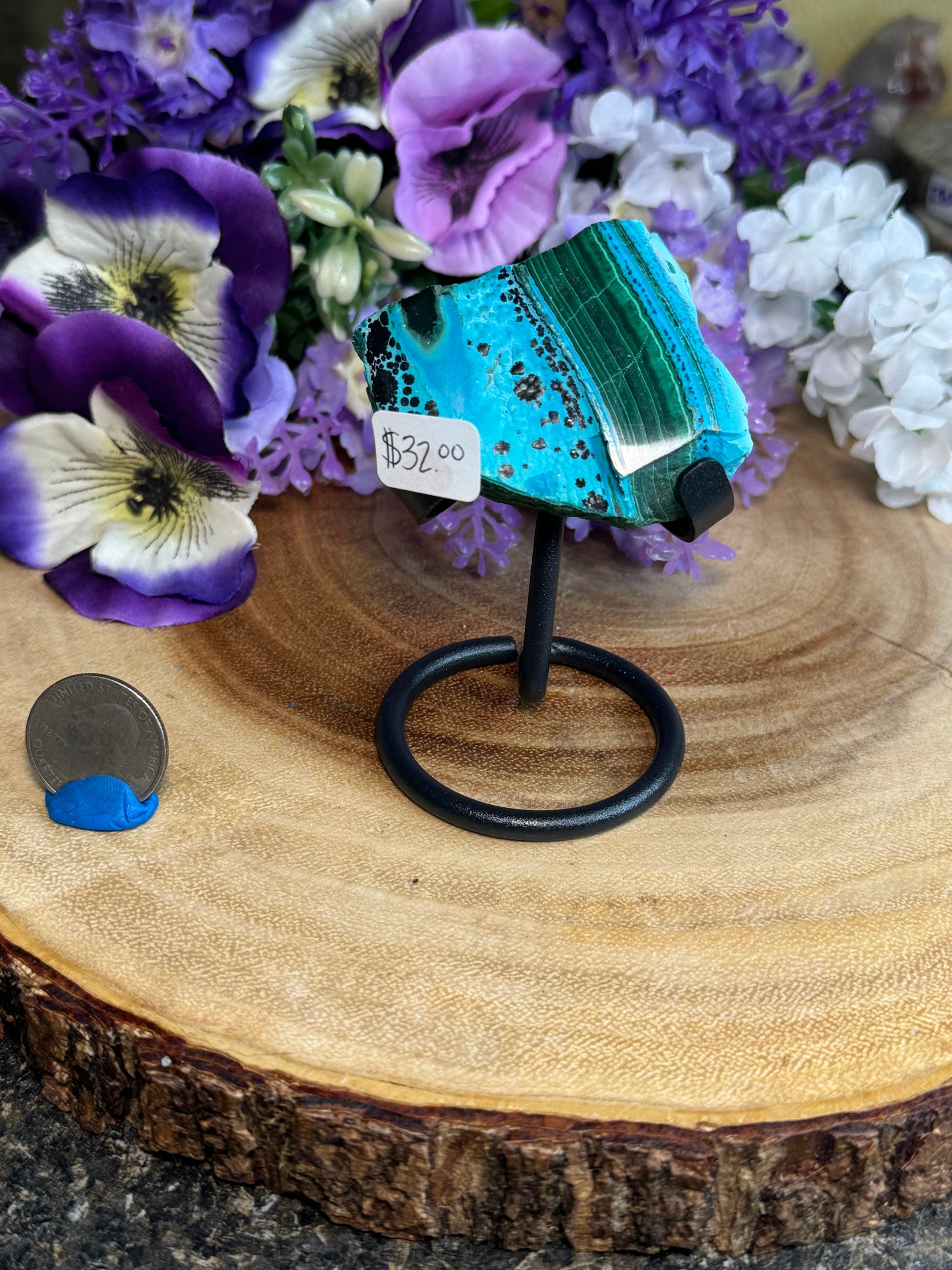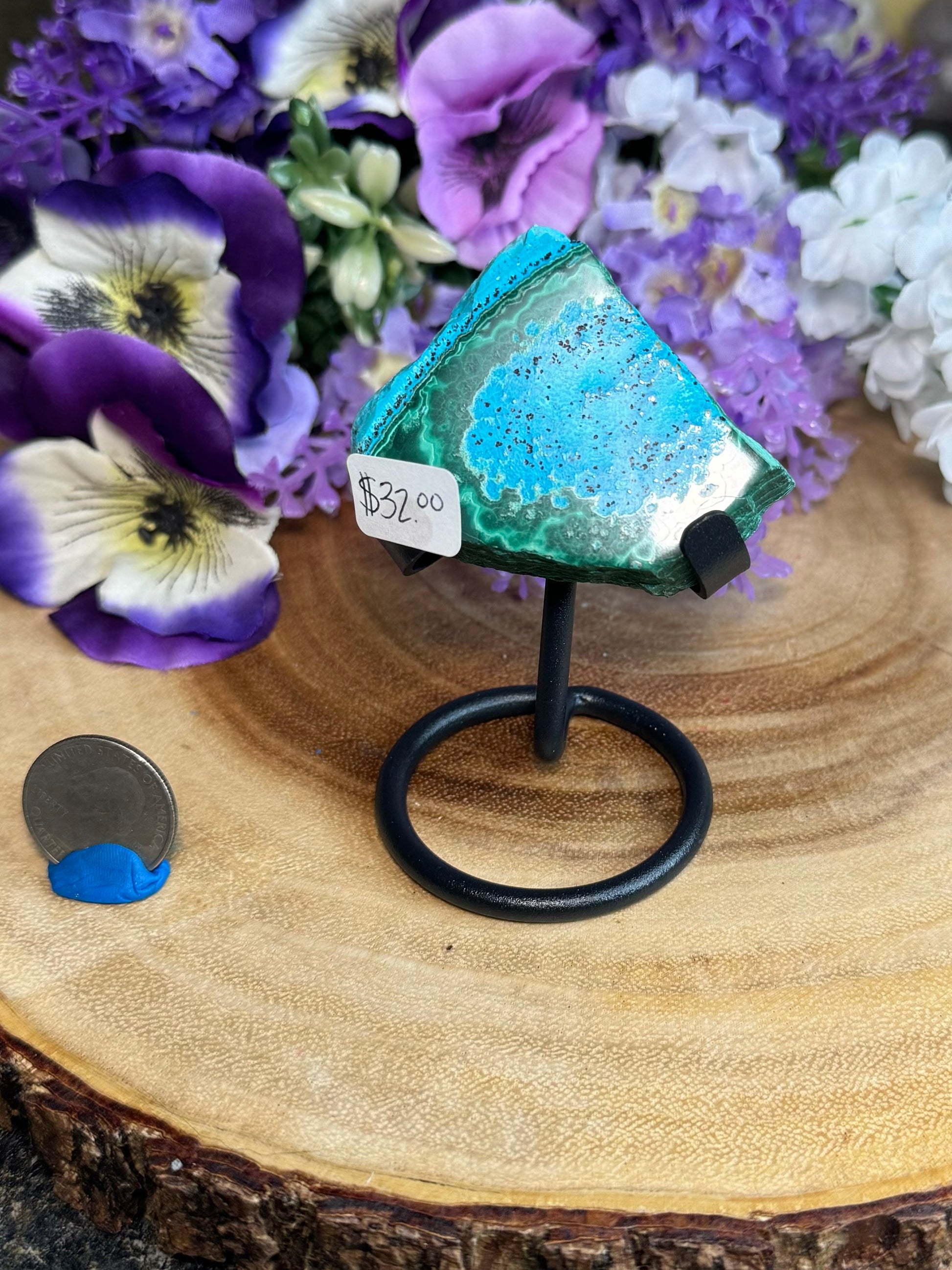 Malacholla is a combination of Malachite and Chrysocolla. It carries both the rich green of malachite and the bold turquoise hues of chrysocolla.