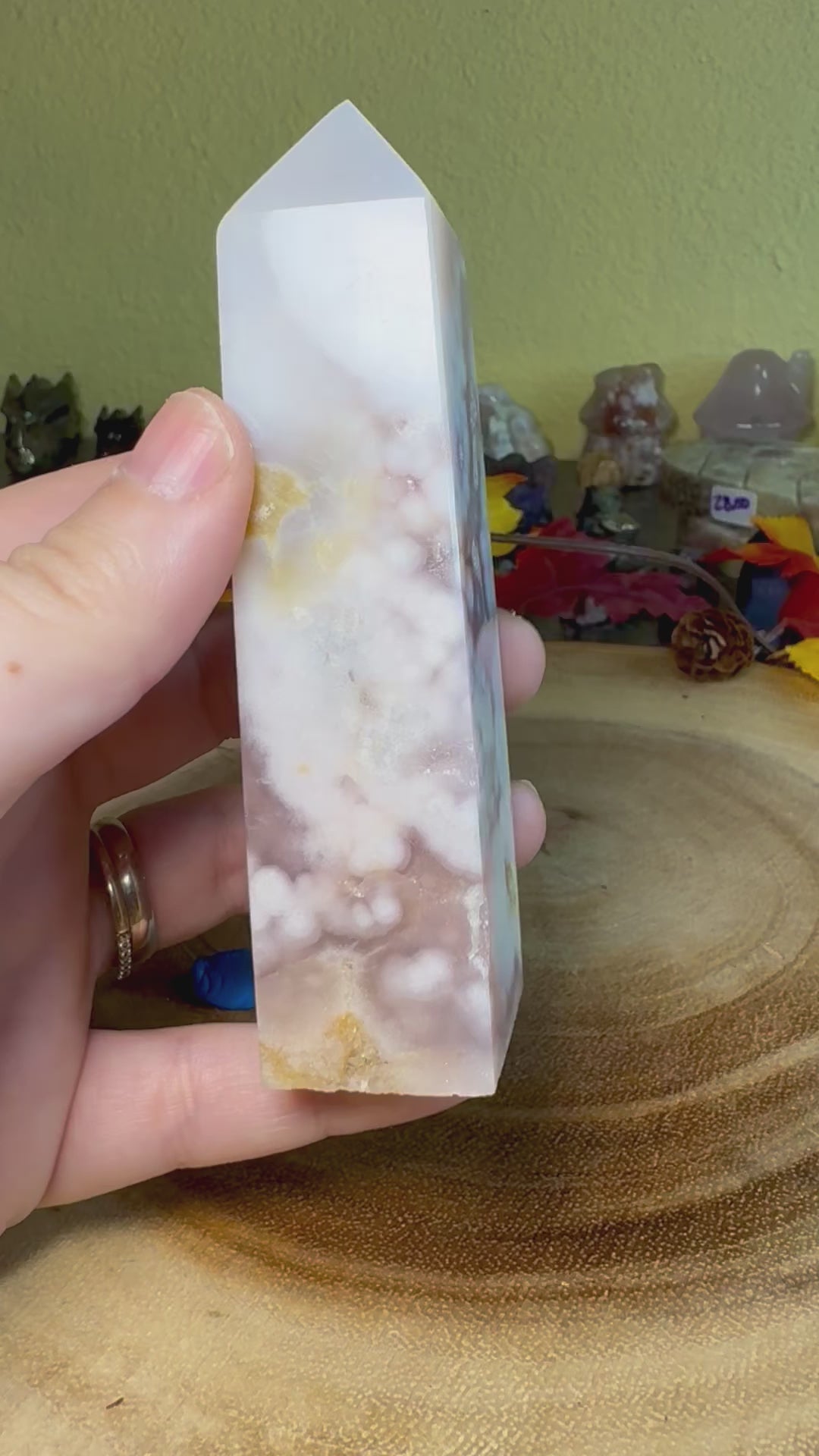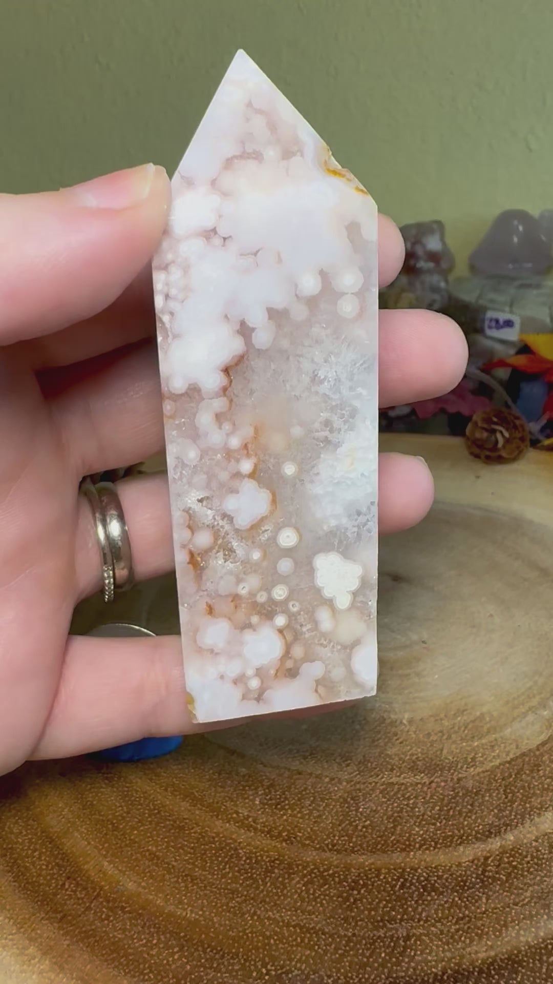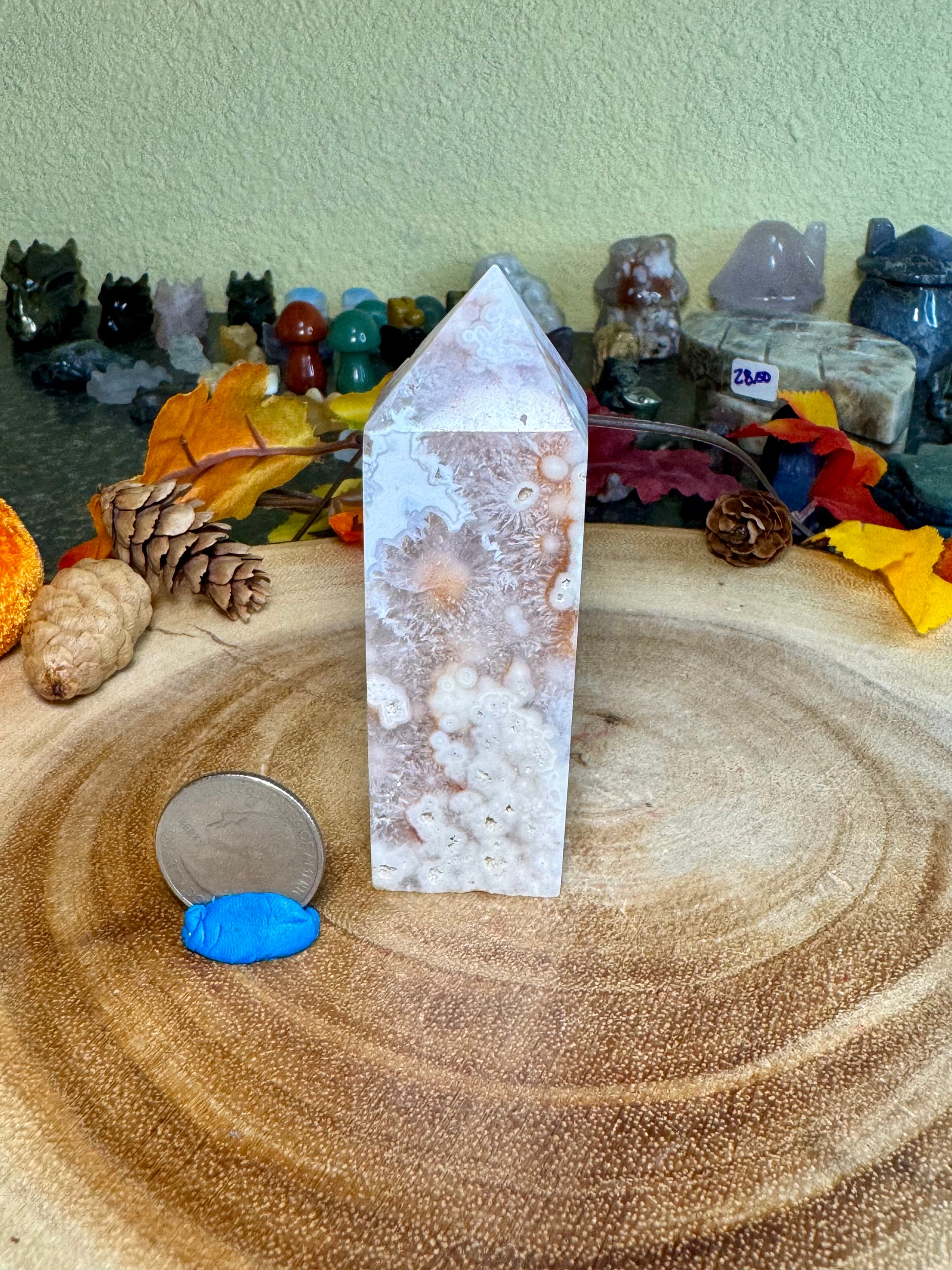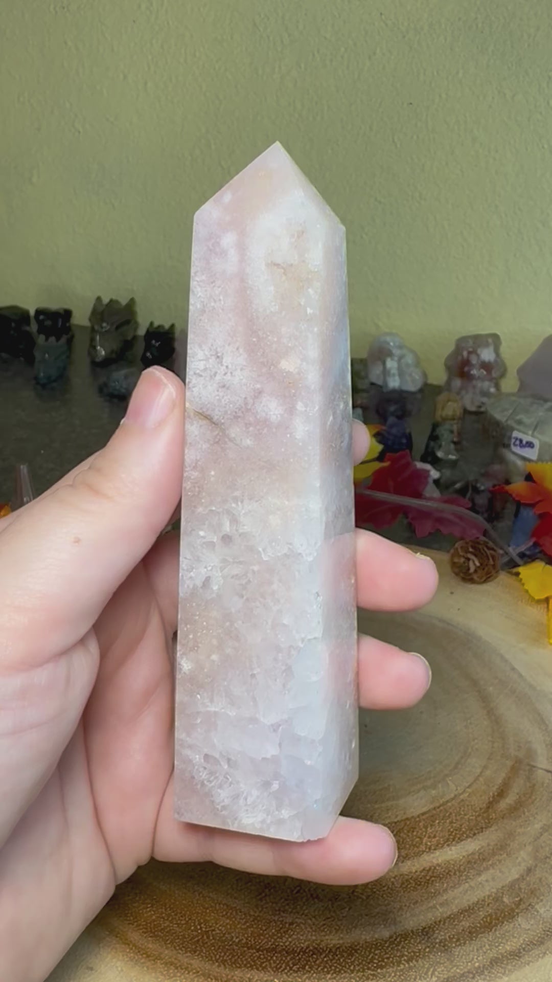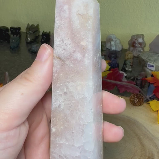 Pink Amethyst and Flower agate is an undoubtedly gorgeous combination that is highly sought after. Please make sure to choose the specific tower you want when checking out. The pictures will scroll to the tower number when you swap through the different tower selections, but feel free to contact me if you are unsure.